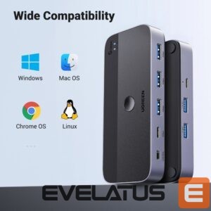 With three USB-A ports and one USB-C port, the Ugreen CM662 switch provides connection versatility. It allows you to quickly and easily share peripherals between two computers. It is an ideal tool for multitasking environments where flexibility in hardware management is required.