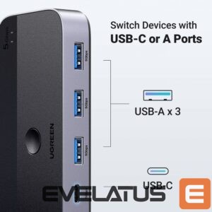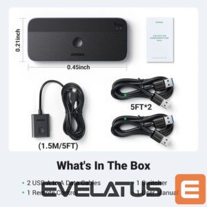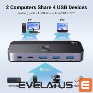 The Ugreen CM662 USB 3.0 switch is a reliable device that enables easy and fast data exchange between two computers, while maintaining high performance and compatibility with a variety of devices. Fast data transfer up to 5 Gb/s allows you to copy and share files instantly. Ease of use thanks to the button on the housing and the remote control makes connection management simple and intuitive. Thanks to wide compatibility with operating systems and the Plug & Play function, the device is ready for use immediately after connection, without the need to install additional drivers.