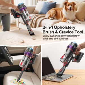 - Daudzfunkcionāli Uzgaļi: Komplektā iekļautie piederumi (šaurais uzgalis un mīkstā birste) ļauj ērti tīrīt ne tikai grīdas, bet arī dīvānus, automašīnas salonu un grūti sasniedzamas vietas.