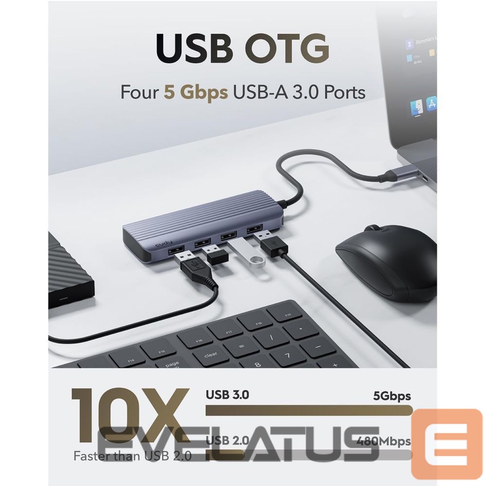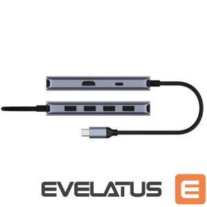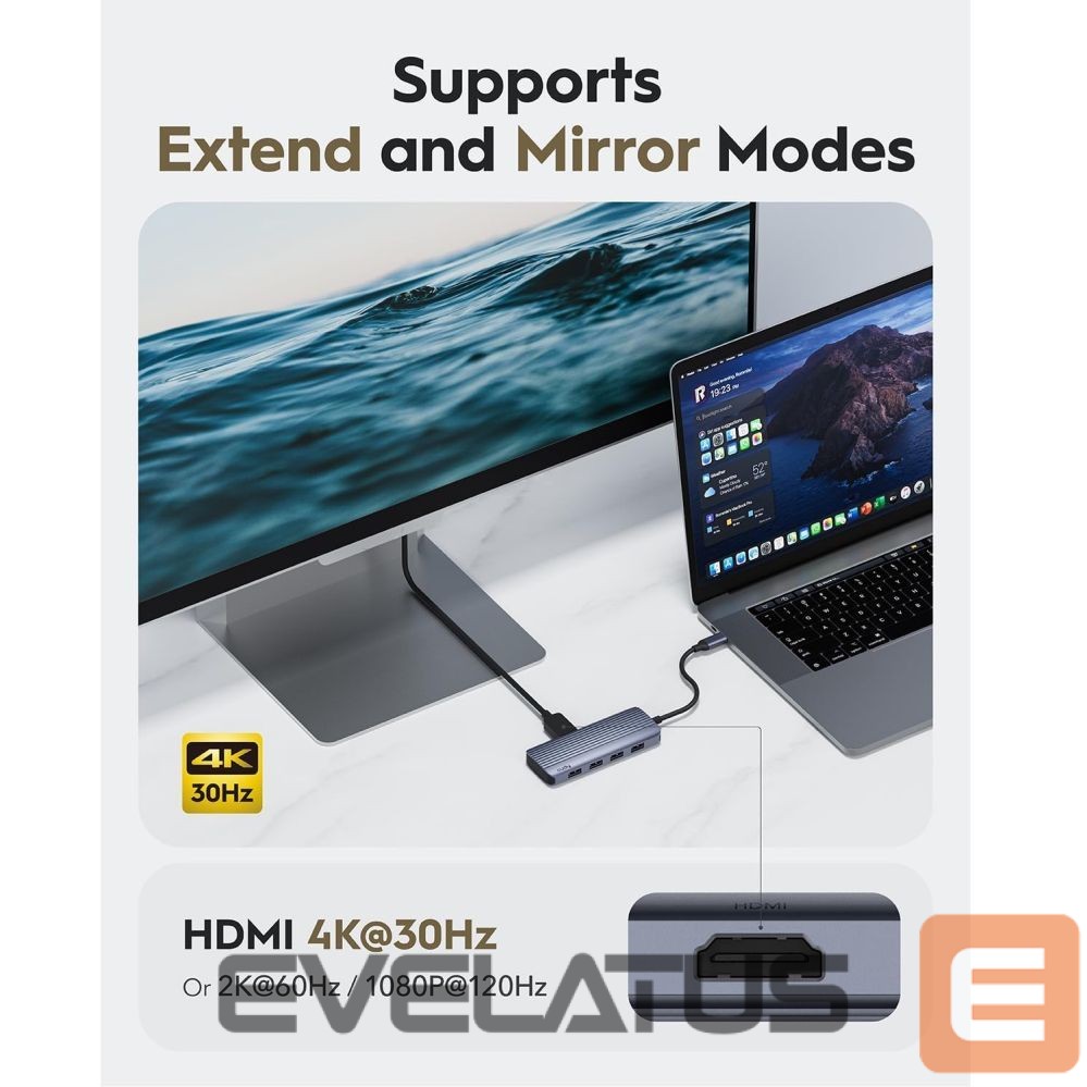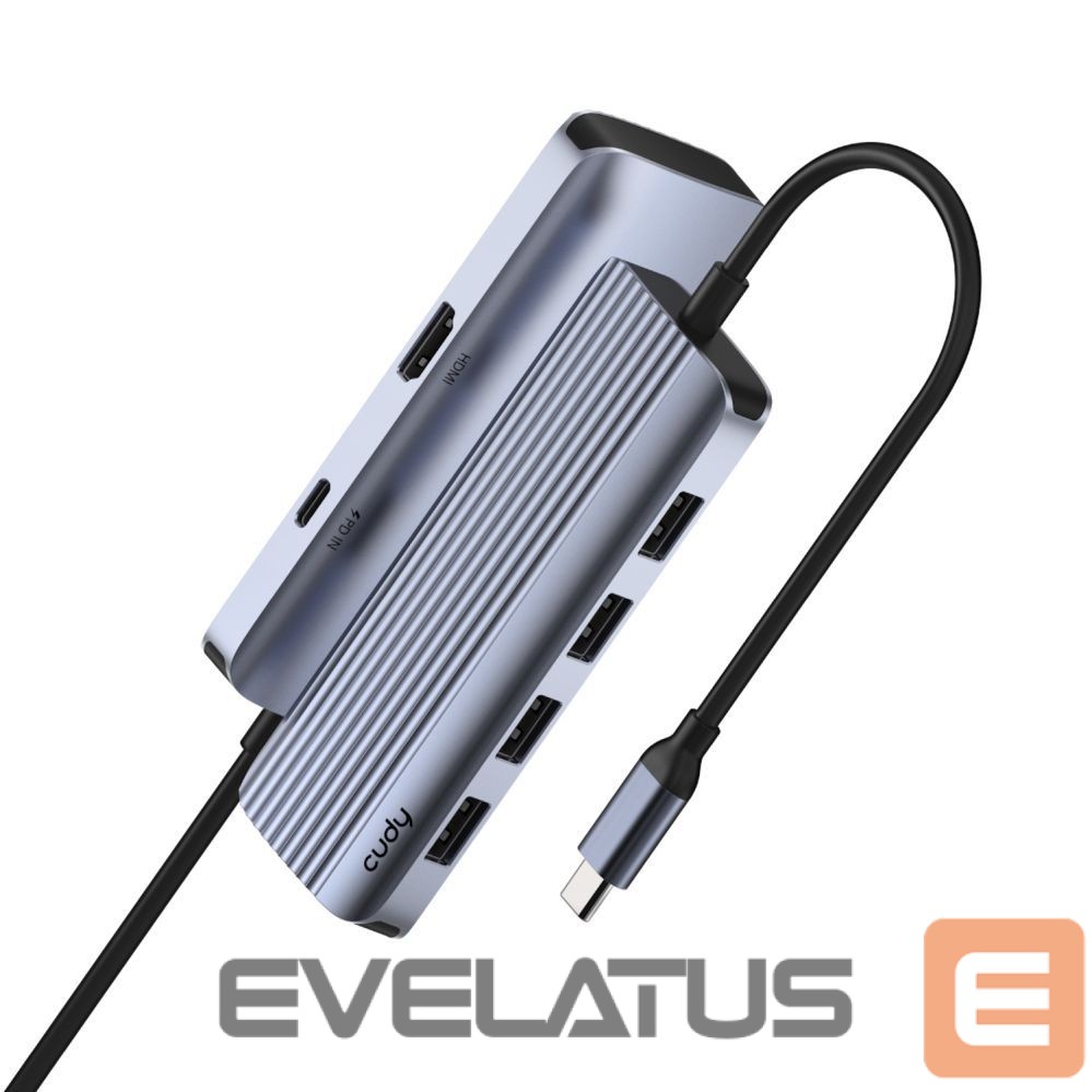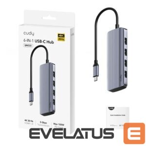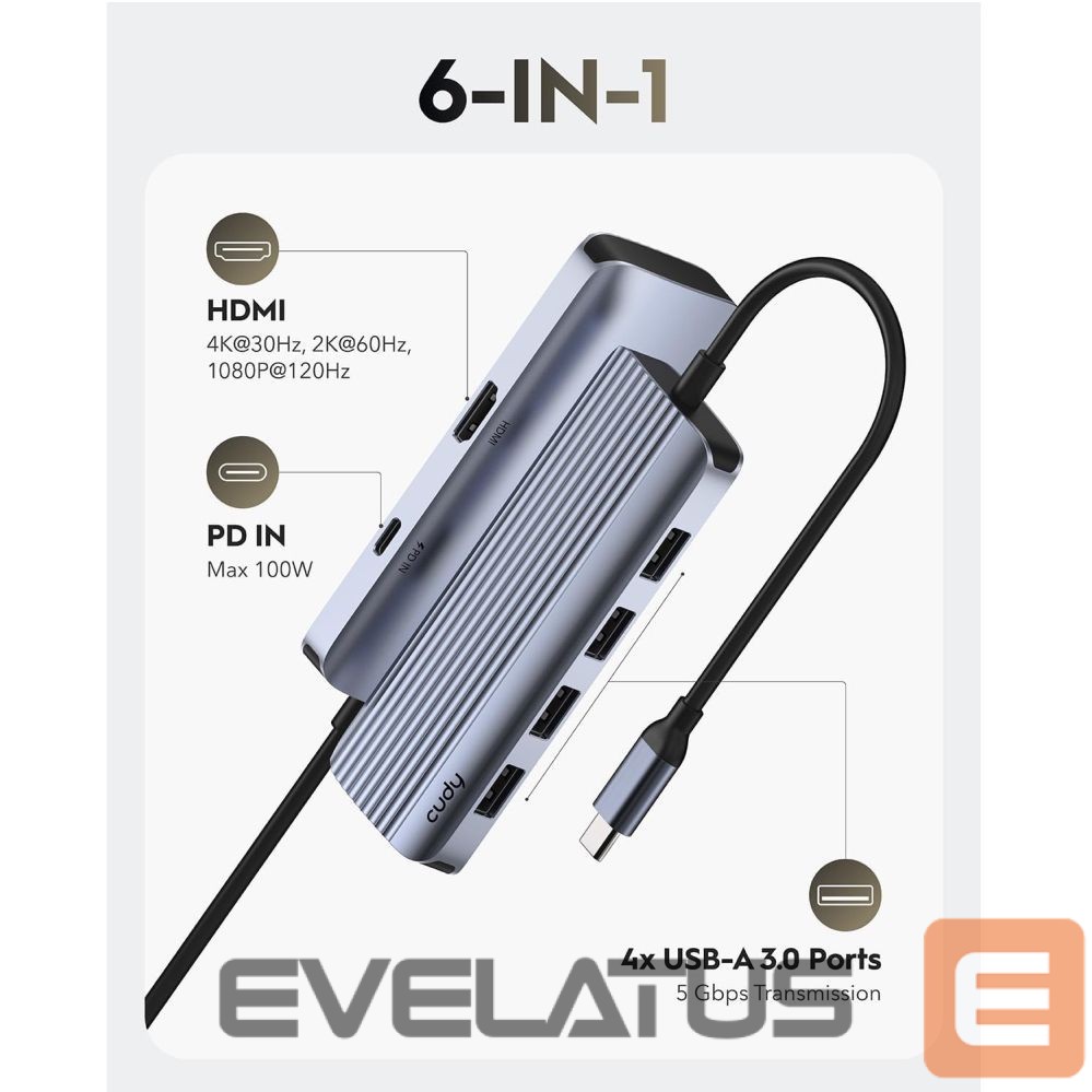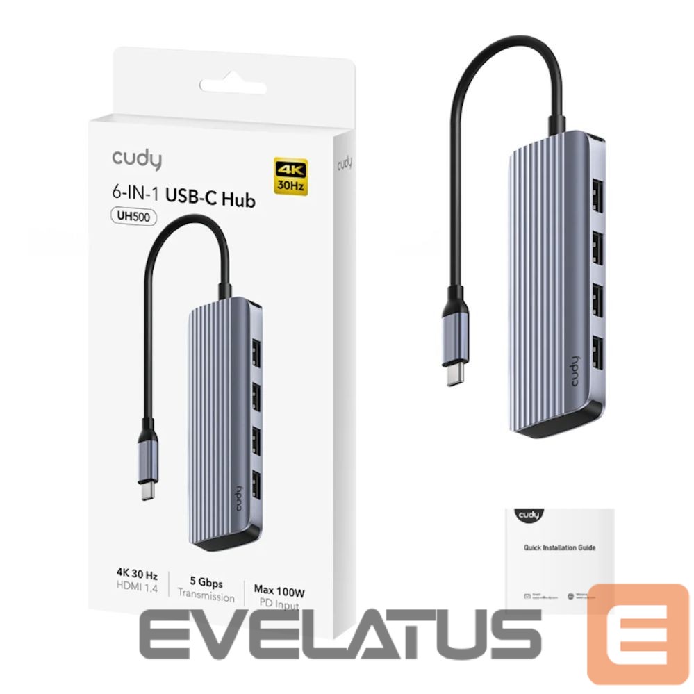 Rūteris Cudy UH500 PortMate USB-C 6-in-1 Hub 4K 30Hz HDMI USB-C PD 4x USB-A 3.0 Aluminum Grey
