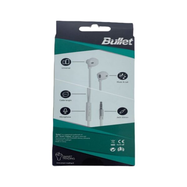 Vadu austiņas – BULLET Earphones 3.5mm, 120 cm. White
