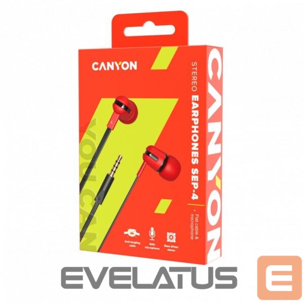 Vadu austiņas Canyon SEP-4 Stereo earphone with microphone 3.5 mm Red