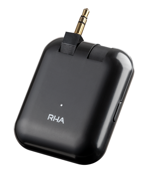 RHA arsenālā ir ne tikai austiņas, bet arī šāds interesants produkts. Būtībā tas ir Bluetooth adapteris, kurš paredzēts ierīcēm ar 3.5mm audio ligzdu. Tas ļauj piešķirt Bluetooth funkciju ierīcēm, kurām tā nav, piemēram, Nintento Switch spēļu konsolei, vecāka modeļa datoram, starppilsētu autobusa TV ekrānam, antīkam CD atskaņotājam.