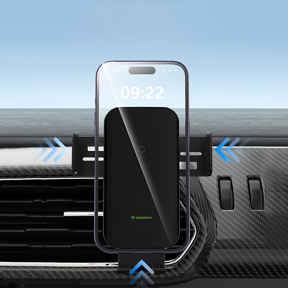 Авто держатель Wozinsky Wozinsky WEDZ-3Y8S clamp car holder with 15W inductive charger for phone on the air vent – black