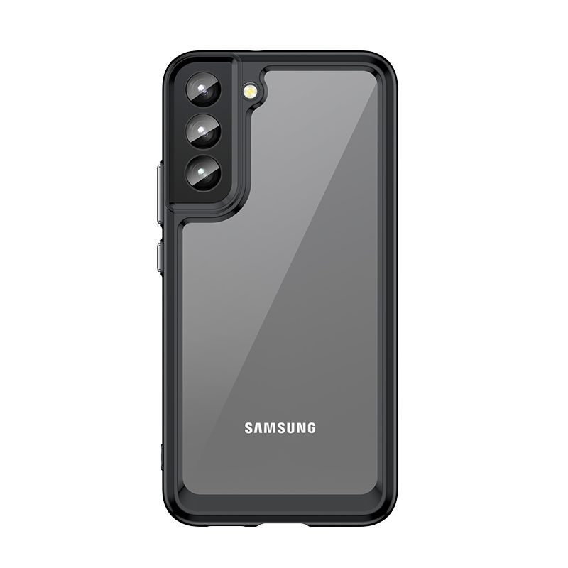 Armored Samsung Galaxy S23+ case from the Outer Space Case series with a black gel frame