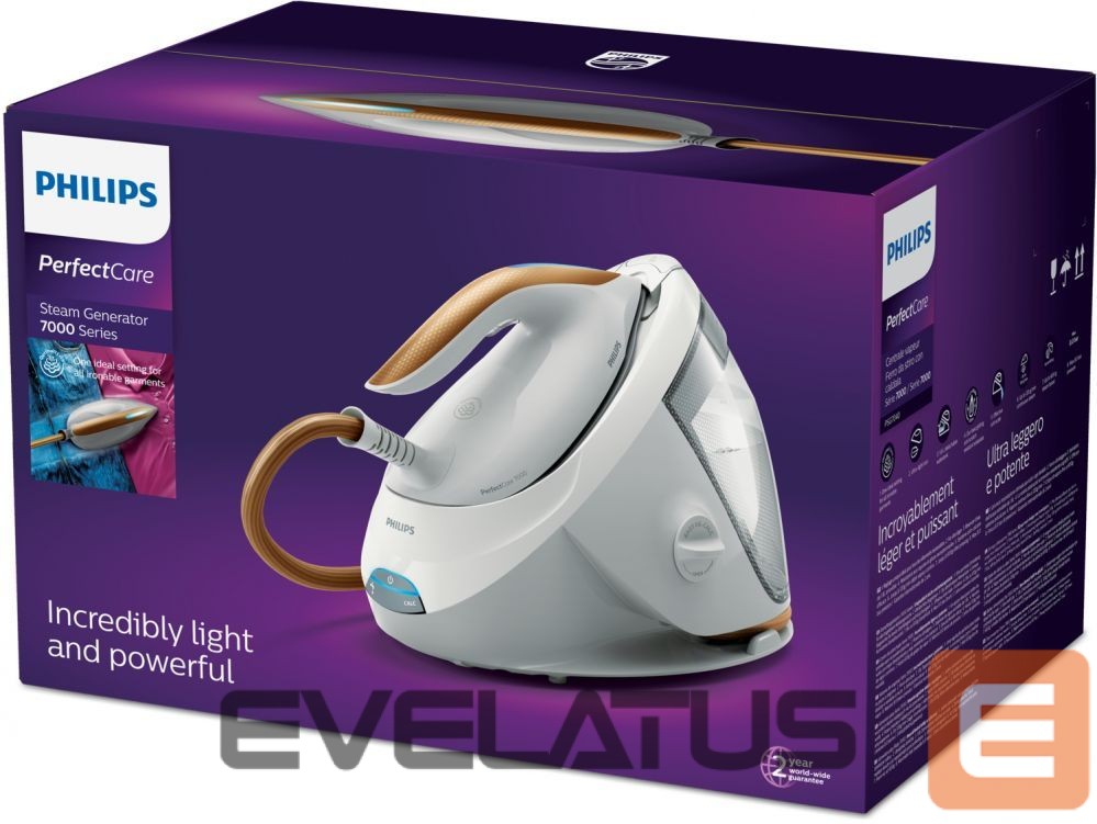 Утюг Philips Iron PerfectCare 7000 Series PSG7040/10 Steam generator, 2100 W, Water tank capacity 1800 ml, Continuous steam 120 g/min, Calc-clean function, White/Bronze