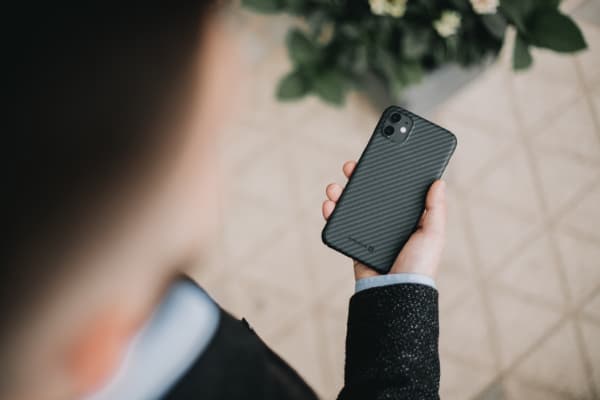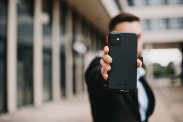 Maciņš ir izgatavots no oglekļa šķiedras – viegla, nekrāsota materiāla, ko veido smalki pavedieni, kas galvenokārt sastāv no oglekļa atomiem. Neticami izturīgs, nedeformējas un neizbalē, tas ilgu laiku pasargās jūsu viedtālruni no triecieniem un skrāpējumiem, vienlaikus saglabājot tikpat glītu izskatu kā pirkuma dienā.
